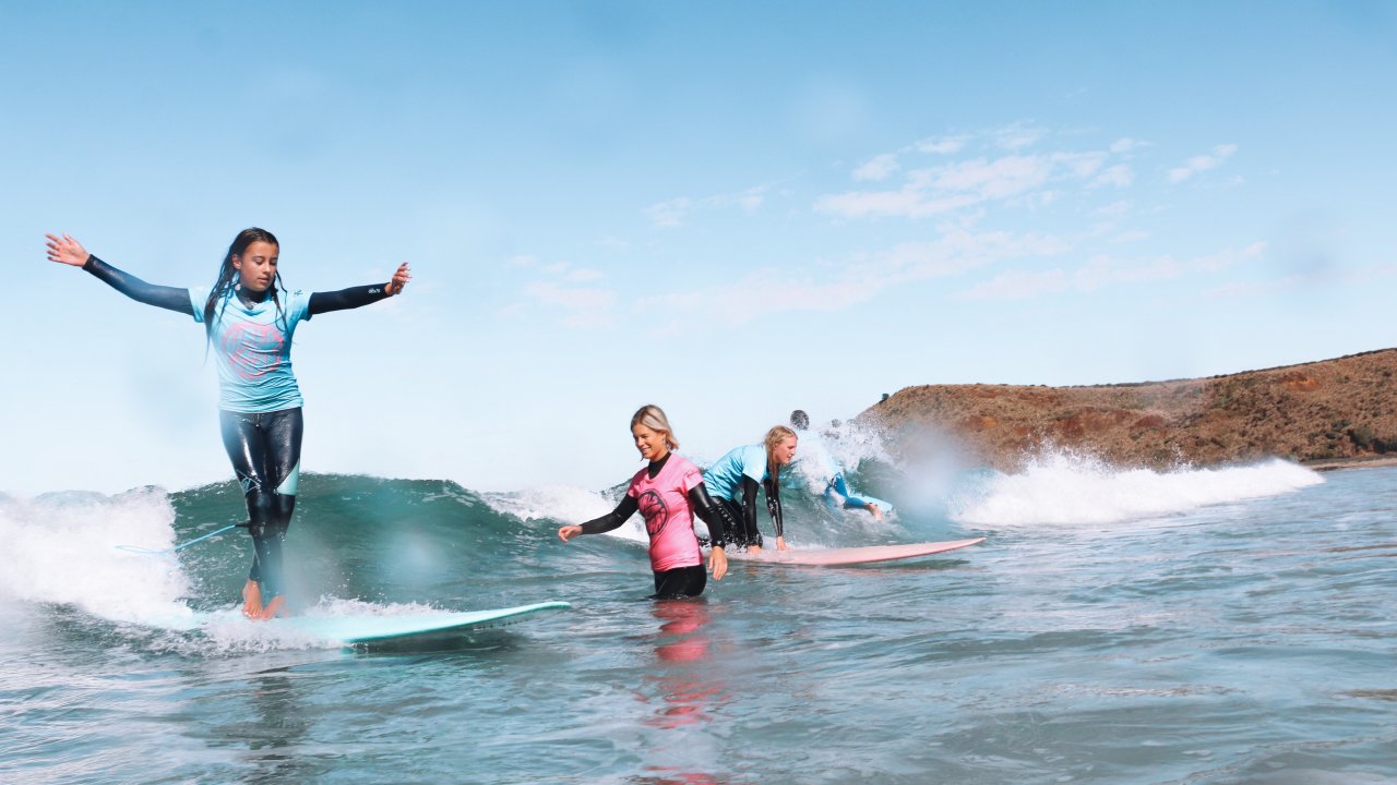 Our school holiday program offers personalised group lessons tailored to each participant. We teach children surf safety, proper technique, and provide coaching to improve their skills. At Girls on Board we use a high coach to student ratio to ensure maximum coaching time for participants.